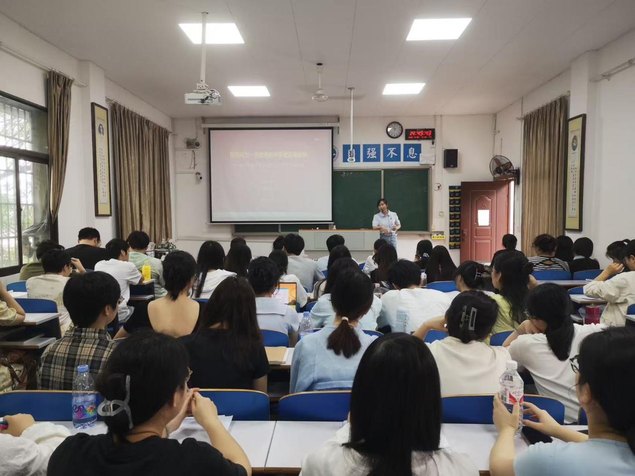 本网讯(记者 邓晶)5月28号,马克思主义学院特邀四位中学思政课骨干教师邓东海、李国润、彭国超、廖雅芸走进大学课堂,开展中学思想政治课名师讲座活动,聚焦“传经送宝赋新能,示范引领促成长”目标,为未来思政教师注入实践动能,我院22级全体在校学生参与。