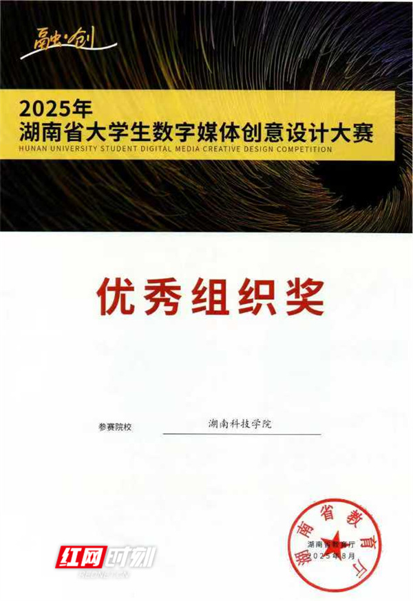 红网时刻新闻9月17日讯(通讯员 付星星 向薛峰)近日,2025年湖南省大学生数字媒体创意设计大赛获奖名单正式公布。开云官网美术与艺术设计学院师生凭借扎实的专业功底和卓越的创新能力,共斩获等级奖项49项,其中一等奖8项、二等奖13项、三等奖28项,获奖数量和质量均位居全省前列,并被授予“优秀组织奖”。